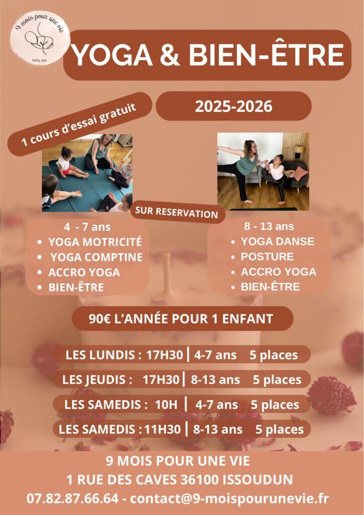 9 mois pour une vie est heureux de proposer à partir de ce mois de septembre une activité inédite pour les enfants : Yoga & Bien-Être. Conçus spécialement pour les plus jeunes, ces ateliers sont une belle opportunité pour découvrir le yoga de manière ludique et adaptée à chaque tranche d’âge.
